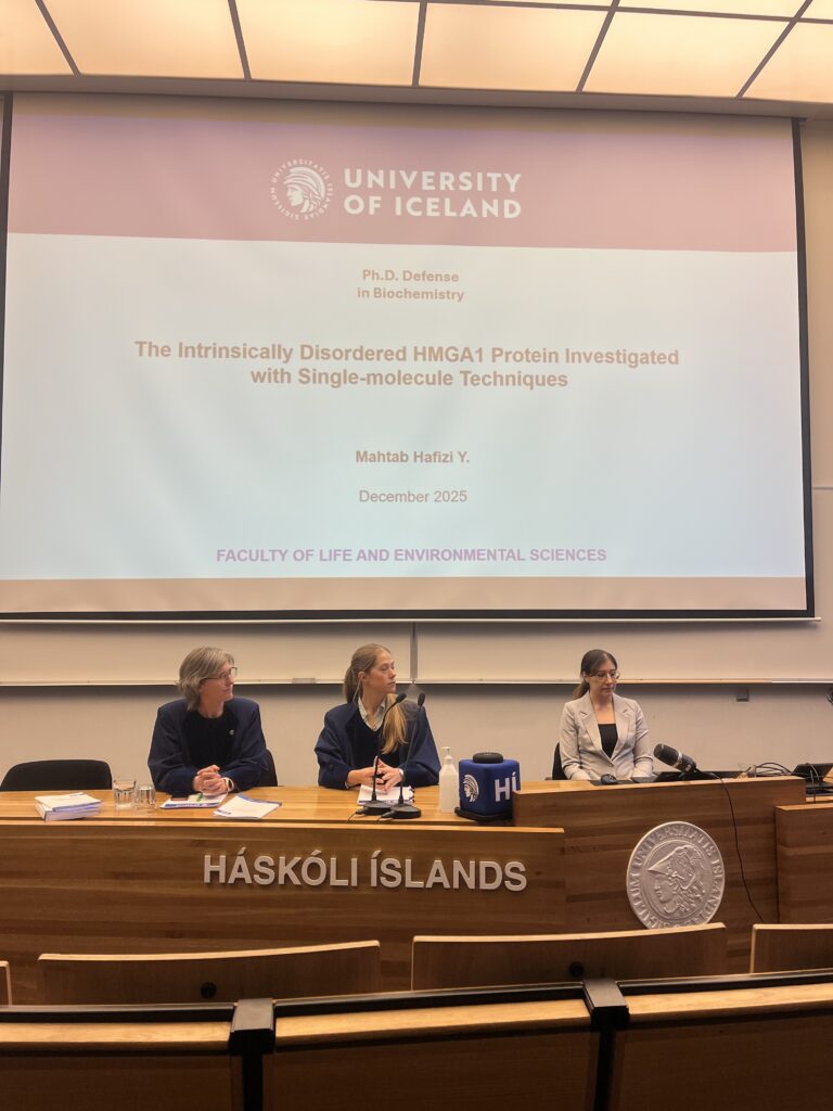 Mahtab defends her PhD thesis brilliantly, in a great discussion with opponents Dr. Margrét Ögmundsdóttir and Dr. Louise Pinet. Congratulations, Mahtab!
